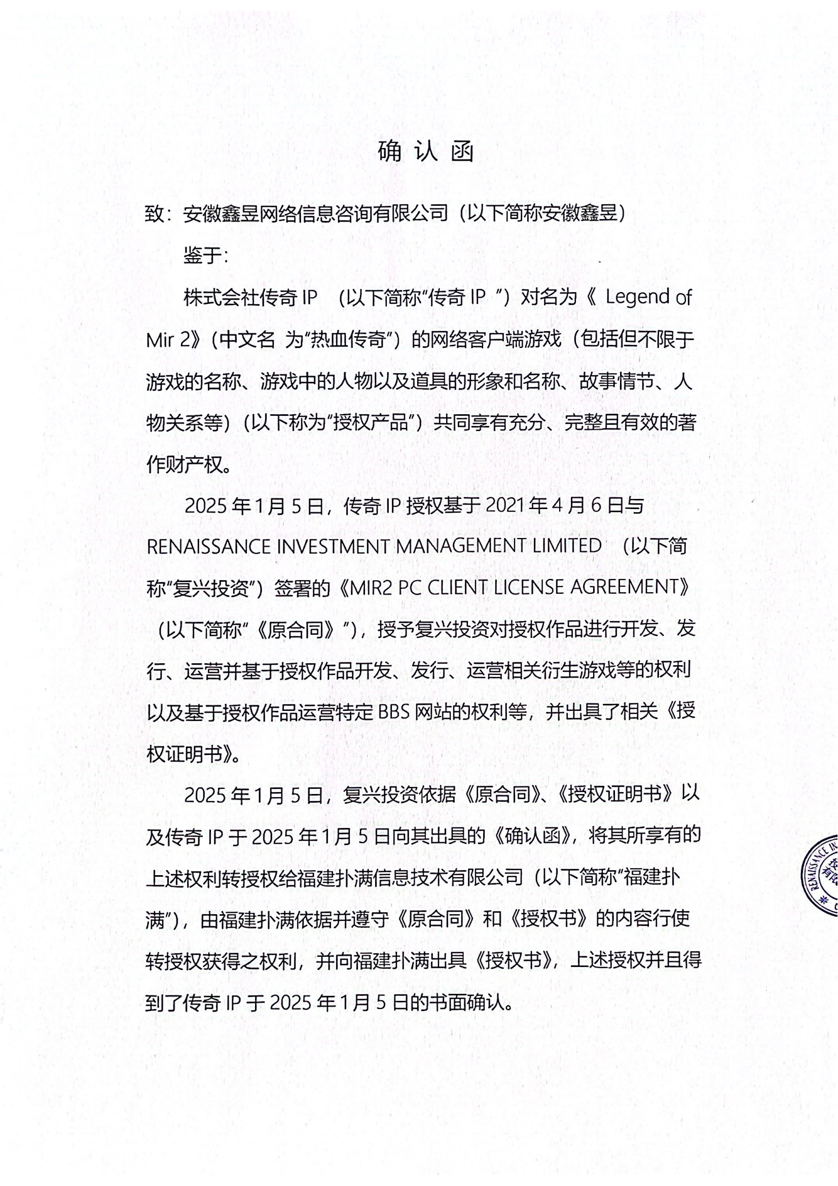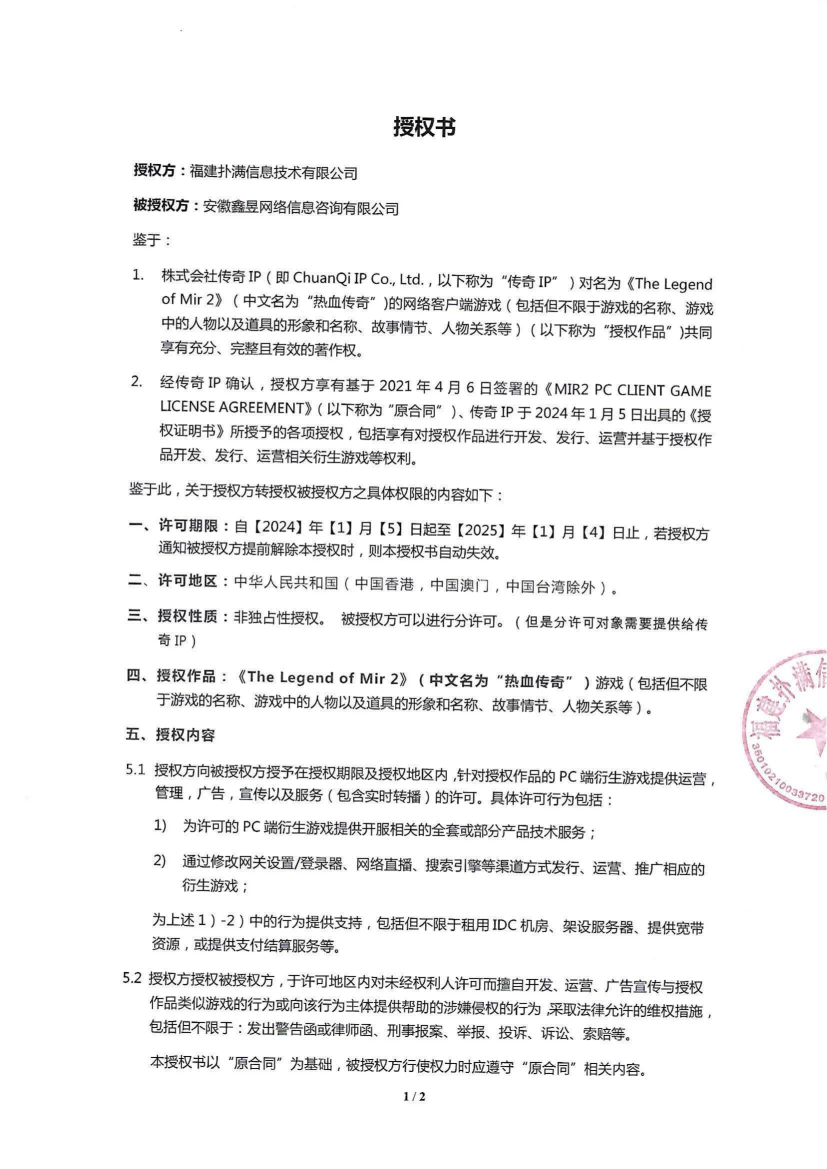 關(guān)于對《The Legend of Mir 2》(熱血傳奇) 衍生品游戲直播的嚴(yán)正聲明